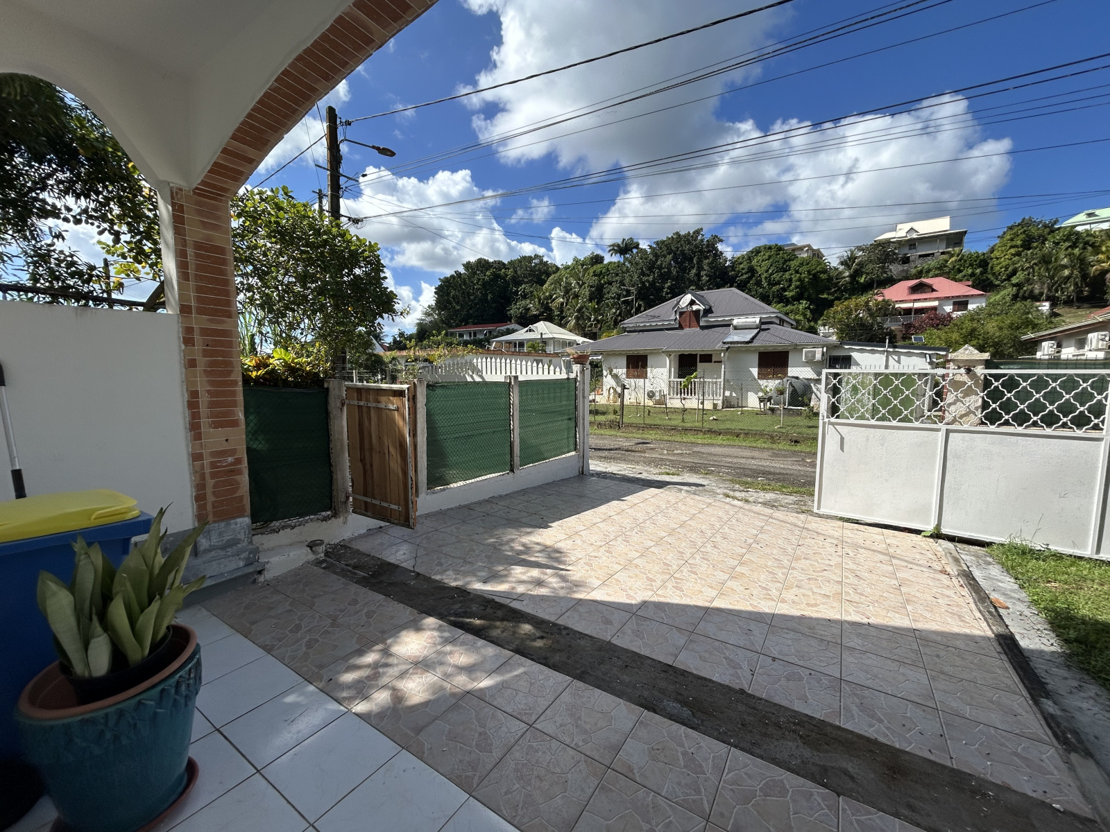 A l'entrée de la propriété, un portail sécurisé permet le stationnement d'un véhicule à l'intérieur des lieux.