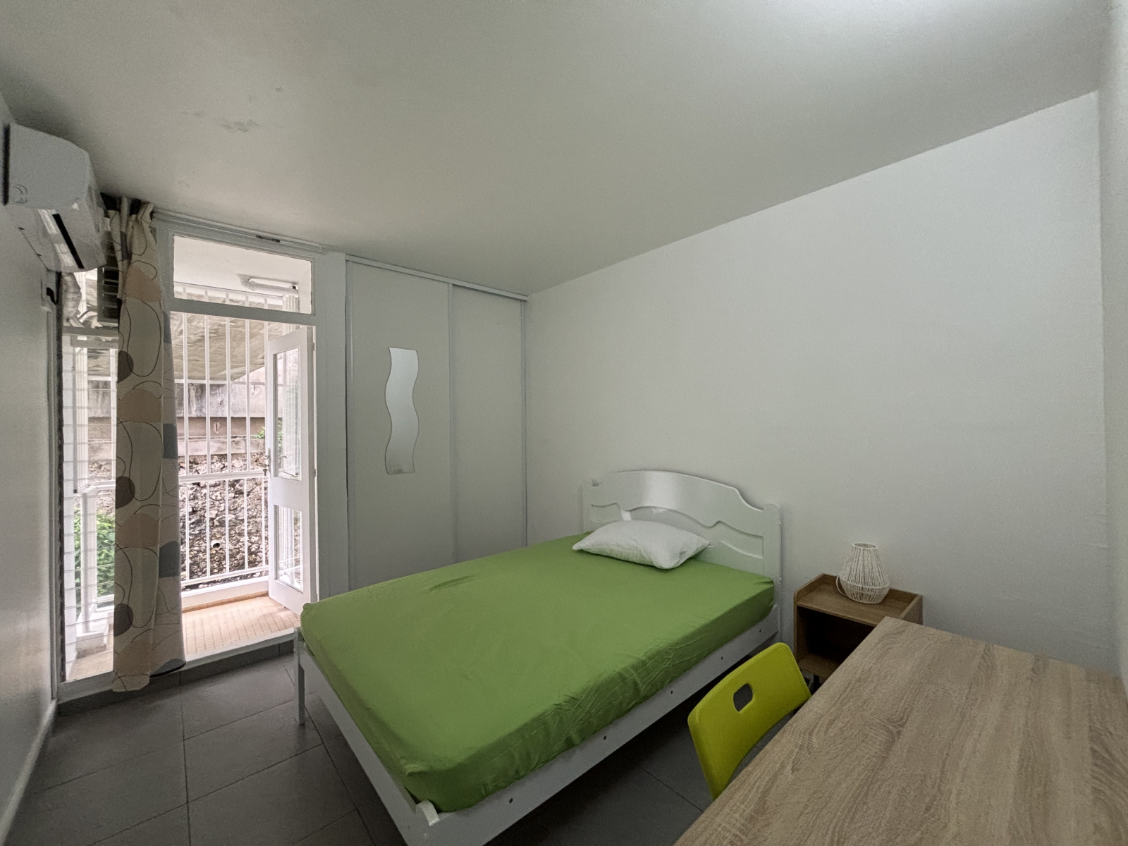 L’entrée dessert un dégagement menant à une cuisine fonctionnelle ouverte sur un séjour convivial, prolongé par une terrasse. L’espace nuit se compose de trois chambres climatisées, dont deux disposant d’un accès direct à un balcon privatif. Une salle d’eau contemporaine, ainsi qu’un WC indépendant, complètent le bien.